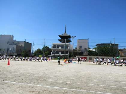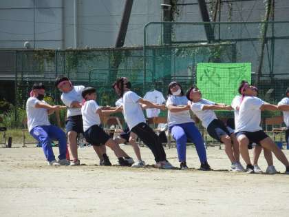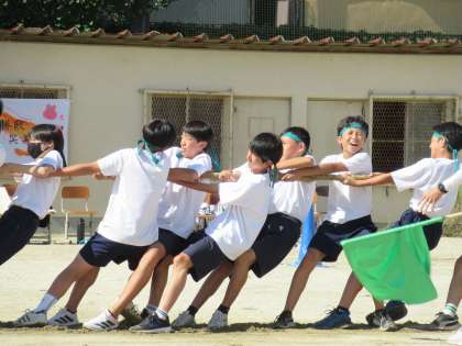そして最終第5試合は、「緑VSピンク」です。各チーム、独自の掛け声に合わせ、心を一つにみんなで綱を引きます。その一生懸命な姿に、グラウンド全体が盛り上がりました。ブラボー!