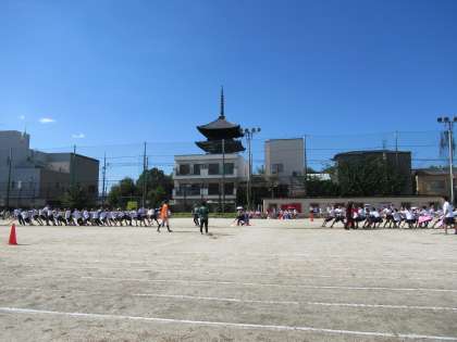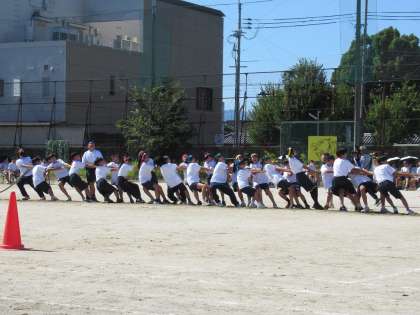 プログラム7番は「学級対抗綱引き」です。体育祭の中で、各クラスの団結が披露されます。