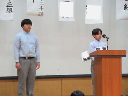 先日は、公正・公平な生徒会選挙をありがとうございました。今回の選挙は、すべての役職が信任投票で実施されました。それでは、次期生徒会本部役員の皆さんをご紹介したいと思います。