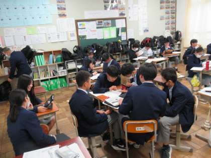 本日6限に、2年1組の学活を覗かせていただきました。第3回テストを2週間後に控え、クラスで学び合いの時間を持っていました。