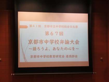 11/2(日)、「第67回京都市中学校弁論大会」が、京都市総合教育センター大ホールで開催されました。