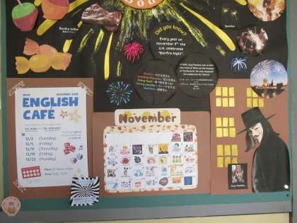 11月の「English Board」は、11月5日の「Bonfire Night」にちなんだ特集です。Thank you very much !