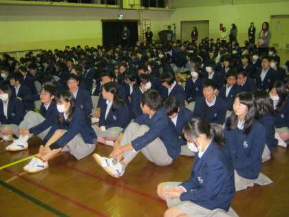 寒い中でしたが、全校集会を行いました。