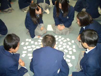 昨日の5限に1年生で百人一首大会をしました。上級班・中級班・初級班に分かれて取った枚数を競います。みんな楽しそうに授業で学んだ成果を発揮していました。