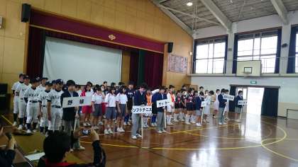 みんなで校歌を歌い,大会に参加する部員たちを激励しました。