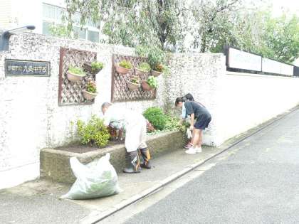 部活動からもほぼ全員が参加しての清掃活動でした。わが母校,愛する九条中学校をみんなできれいにしました。