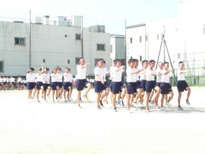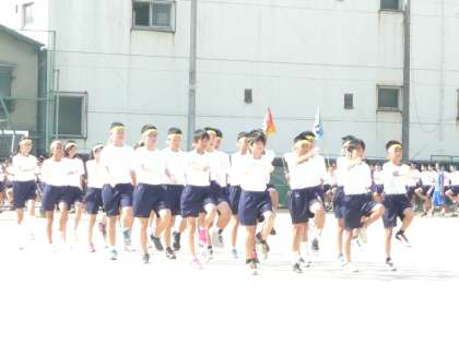 平成27年度の体育祭が快晴のもと,多くの保護者や地域の方々の参観する中行われました。開会式で,体育委員長から参観していただいている方がに感動を与えられるよう一生懸命競技するとの選手宣誓があり体育祭がスタートしました。