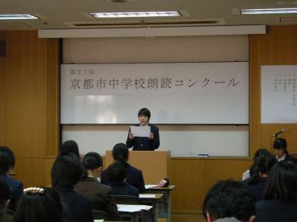 秋晴れの10月31日(土)の午後,京都市総合教育センター 第3研修室で中学校朗読コンクールが開催されました。持ち時間は一人1分程度,そんな短い時間の中で生徒たちは自分の持てる力の限りの技術を使い,緊張と不安の中一生懸命頑張ってくれました。その結果みごとに,最優秀賞,優秀賞,奨励賞をいただきました。