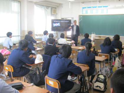 11月6日(金)4限 高校の先生による出前授業が行われました。公立・私立高校の先生方の授業を体験することで、進学意識を高めることをねらいとしています。京都橘高校(社会)・京都学園高校(英語)・日吉ヶ丘高校(英語)から3名の先生が来られました。3年生は少し緊張気味でしたが、最後までしっかりやっていました。