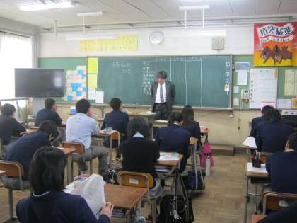 11月18日・19日の二日間にわたり、3年生各クラス社会科の授業の一環として「租税制度」についての授業が行われました。下京税務署から派遣された税理士の方が税金についての授業をして下さいました。所得税の累進課税などをわかりやすく丁寧に教えて下さり、最初は頭を痛めていた3年生も、徐々に理解してきているようでした。みんな真剣に授業を受けていました。