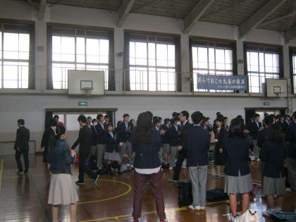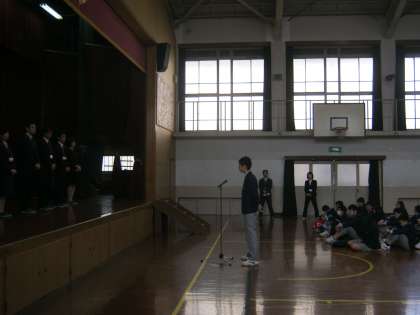 4月6日(水)クラス発表の後、体育館では着任式が行われました。新しく九条中学校に着任された教職員は12名です。一週間ほど前には、離任式でお世話になった教職員とのお別れをしました。寂しい思いをしましたが、新たに来られた教職員の方々と共に、この一年を充実した日々にしていきましょう。新着任の教職員の方々より、君たちの方が九条中学校では先輩です。いろんなことを教えてあげて下さいね。よろしくお願いしますよ。