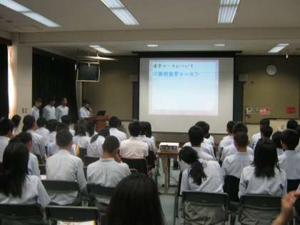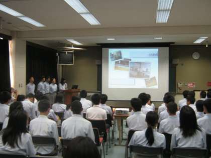 7月4日(月)3年生高校訪問報告会が多目的室で行われました。5月15日に実施した高校訪問の発表です。各グループがパワーポイントを使って説明してくれました。どのグループも大変わかりやすく、上手に発表していました。保護者の方や高校の先生方も来校され、緊張した雰囲気の中、あっという間の2時間でした。