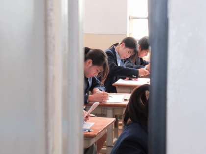 学校では、本日、第3回テストの2日目を迎えました。取材班が回らせていただいたときには、音楽の聞き取りテストの最中でした。