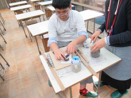 すでにカップ側面のデザインに取り掛かっている人もいます。それにしても細かな作業を丁寧にこなす、まるで職人さんのような作業ぶりに感心しました。
