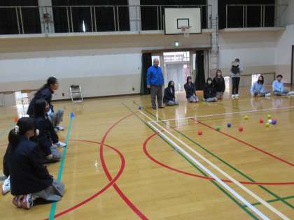1年生の人権学習では、京都市障害者スポーツセンターの先生から、講義を受け、パラスポーツ体験「スクエアボッチャ」に取り組みました。