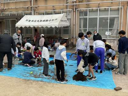 毎年2回目は、九条中学校のチャレンジ体験期間に実施し、小学生と中学生と地域の方が一緒になって、ふれあいを楽しみながら進めていきます。