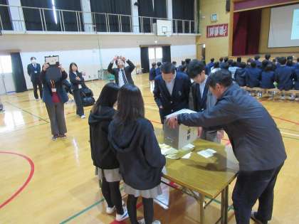 開票作業では、3年生の選挙管理委員の皆さんが活躍してくれました。