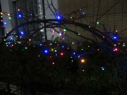 現在、中庭の植栽で、日暮れと共に灯りをともす「九(ク)ミナリエ」が行われています。