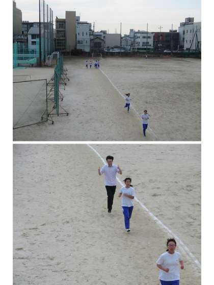 こちら2組の持久走の学習では、よく声が出ています。準備運動から大きな掛け声が聞かれます。持久走でも、メンタルの充実が記録につながります。