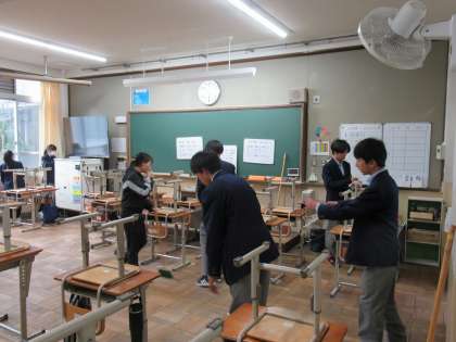 各教室もきれいにしていきます。感謝の気持ちが感じられます。