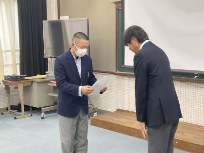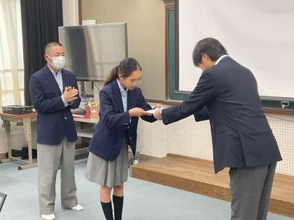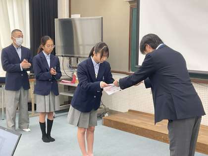 それでは、昨日の終業式の中で行われました、伝達表彰の模様をお伝えいたします。