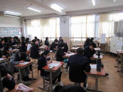 こちらは3年生の様子です。まるでテスト中のような雰囲気が...、実は「3年生を送る会」での合唱曲を決めているところでした。なんと11曲の候補の中から決定していくということで、皆さんすごい集中です。すでに3年生の思いを感じました。