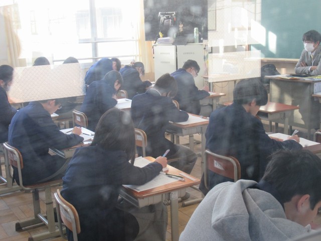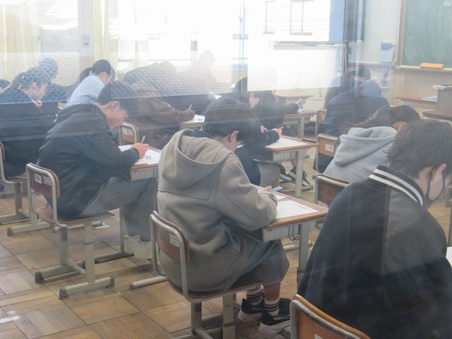 こちら2年生も、2日目の3科目に挑んでいました。中学校の学習についても、得意や好きが自覚出来てきたと思います。得意を生かし、苦手克服に努めてほしいと思います。3年0学期を充実した期間にしてください。