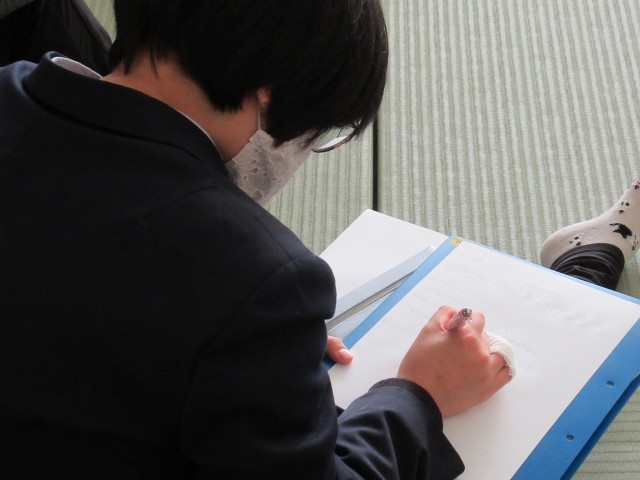 飲酒や喫煙、医薬品、そして違法薬物について、講師の先生から具体的な話を交えて現状を教えていただきました。講師の先生からの問いかけにも積極的に応え、またMさんはしっかりメモも取っていましたね。そうした姿勢が、「自分で自分を守る力」に繋がっていくと思います。