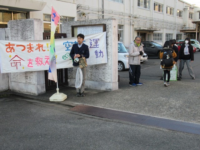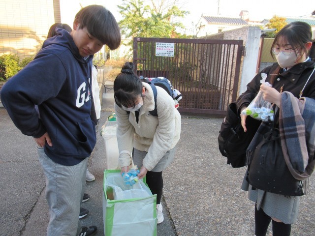 本日、登校時に、今月の回収運動を行いました。エコキャップはポリオワクチンの支援に、使い捨てコンタクトレンズケースは関連企業のSDGsの取組に協力するものです。