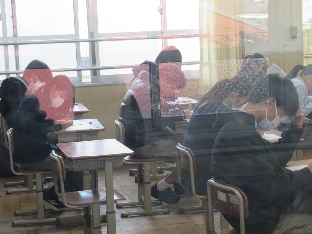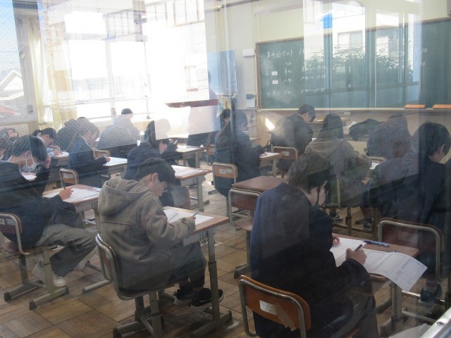おー、さすが! こちら2年1組でも、テストへの熱量が廊下まで伝わってくるようです。