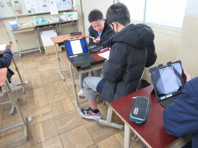 そこでは、個人で黙々と勉強する姿も、仲間と交流しながら勉強する姿も見られるのですが、手元にはGIGA端末があります。生徒の皆さんにとって、テスト勉強のツールとしても、GIGA端末が役立っていることを実感します。上手に活用できていますね。