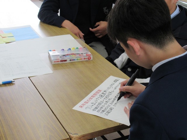 九条中学校の来年度の取組を、生徒の皆さんと教職員で協議するこの機会も、5回目を迎えました。生徒代表の本部役員の皆さんも積極的に発言していきます。