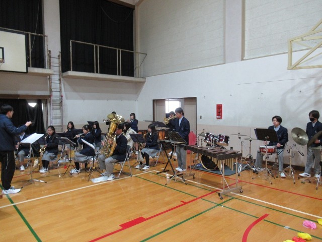さあ、吹奏楽部の軽快な演奏に合わせて、3年生の入場です。拍手ー!