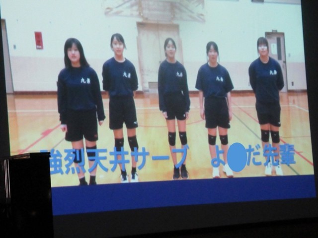 女子バレーボール部は、3年の先輩方の得意だったプレーを称えながら、一人一人に温かなメッセージを送ってくれました。