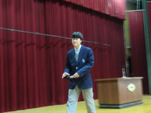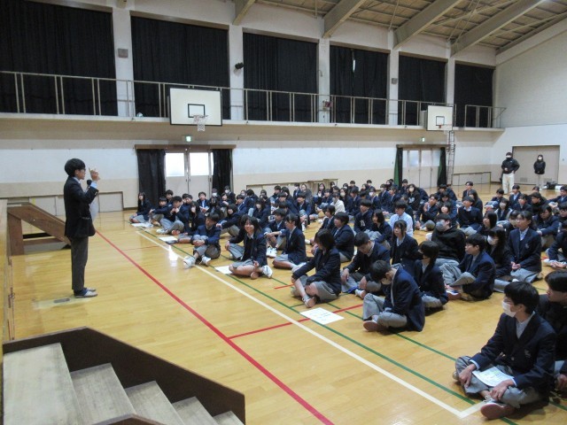 今回、生徒会本部からは、2年N・Mさんが代表して、今年を振り返り、来年に向けて、力強い呼掛けをしてくれました。