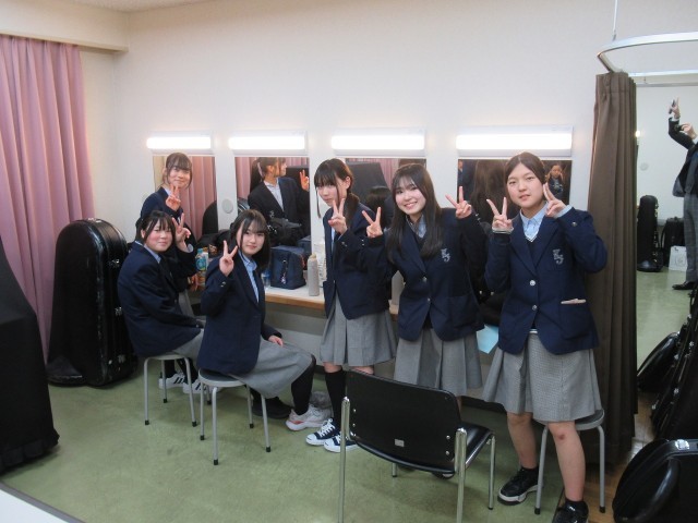 本番前の控室で、それぞれに過ごす吹奏楽部の皆さんです。今回も、OB、OGの皆さんやご指導いただいている先生方にも多数ご協力いただきました。ありがとうございました。