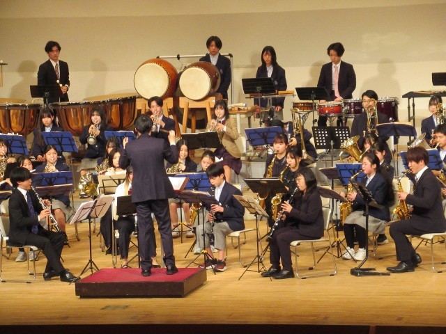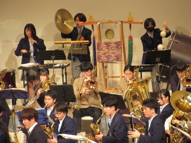 そして、第1部クラシックステージの最後を飾る曲は、「Mont Fuji(富士山)~北斎の版画に触発されて~」です。この曲では、OB、OGの皆さん、指導者の皆さん、そして顧問の先生にも加わっていただき、まさに「ビッグバンド」での演奏となりました。