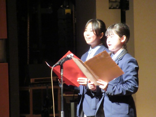次の曲紹介に、2年生ペアの登場です。S・SさんとT・Kさんです。テンポを生かしたアナウンスで、思わず会場から拍手が起こります。
