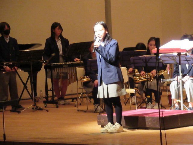 いよいよ演奏会も終盤、最後のあいさつに、元部長S・Mさんが立ちます。
