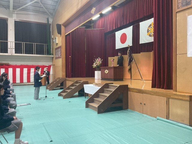 最後には、新入生代表による力強い誓いの言葉があり、これからの新入生の活躍が今からとても楽しみです。まずは、小学校とは異なる中学校生活に一日一日慣れながら、最高のスタートを切ってほしいと思います。 新入生の皆さんの今後の活躍を心から期待しています。