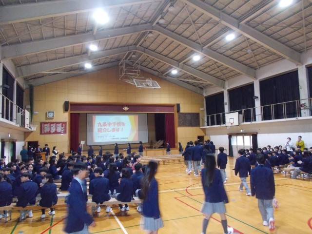 その後、九条中学校での一日の様子や制服の正しい着こなしについて、上級生が丁寧に紹介しました。