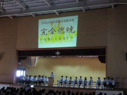 生徒会本部と各専門委員会のリーダーシップの元に,生徒一人一人が主体となって様々な行事等に取り組み,充実した学校生活を送れるよう頑張って欲しいと思います。