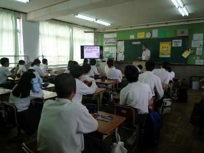 7月12日(木)。京都府警スクールサポーターによる「3年薬物乱用防止教室」を実施しました。薬物は一時的な「快楽」と引き換えに「幻覚・幻聴」「イライラや不安」を生み出し「薬物依存」を引き起こすこと、今若者が薬物の危険にさらされており、いわば「薬物警報」と言える状況にあること等を学習しました。「誘われても断る勇気を持つことが大切」と認識する学習でした。