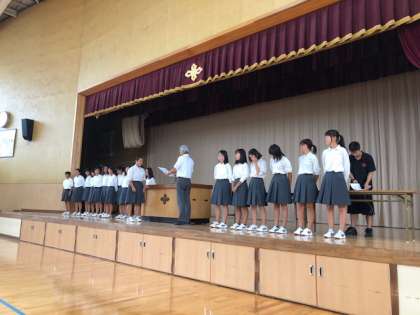 8/24(金),2学期の始業式に先立ち,夏季休業中に活躍した部活動等の伝達表彰を行いました。