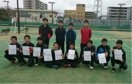 ソフトテニス男子団体戦では,4月28日に桂中学校会場で3回戦まで勝ち抜き,30日に西院コートで準決勝が行われました。京教大附属桃山中学校に2対1で敗れ,決勝に進出できませんでしたが,団体3位になり夏季大会にむけて決意を新たにしています。個人戦は,29日に西院コートで行われ,1チームがベスト16に進出しました。