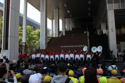 5月11日、京都イオンで行われた「交通事故を無くそう!キャッチボール大作戦」で本校吹奏楽部が演奏させていただきました。