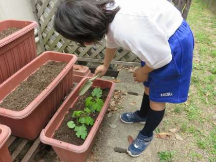 本日,支援ルームの技術の授業でゴーヤの苗を植えました。