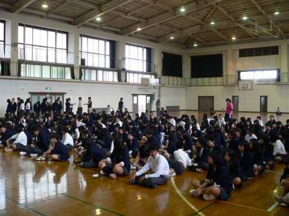 本日(5/10)の4限、3年、学年集会が行われました。内容は、各クラス、家庭訪問の期間に製作した学級旗のお披露目と学級目標が発表されました。