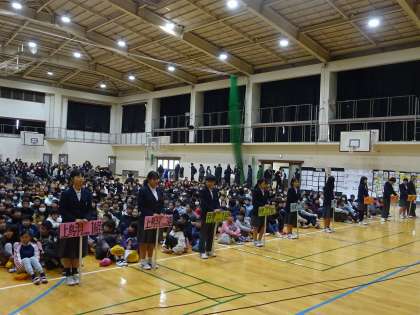 12月6日(金)の午後から,来年入学予定の保護者対象に説明会を実施しました。その後,洛南中学校区4小学校の6年生が中学校を訪問し,体育館で生徒会と小中交流会を実施しました。