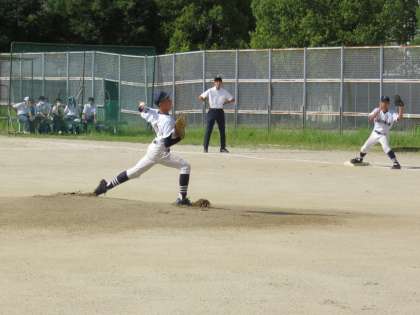 試合は、一進一退の攻防。最終回7回を迎え3対3の同点。ツーアウトまで来た裏の洛南中の攻撃において、2ベースを皮切りにして連打が生まれ、見事にサヨナラ勝ちを収めることができました。